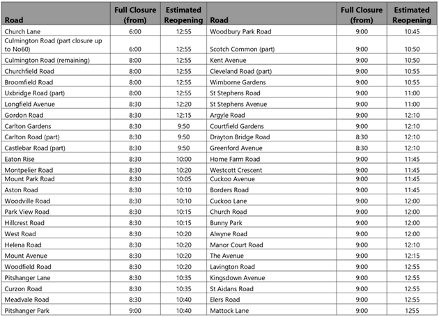 The race begins at 9am on Culmington Road and finishes in Walpole Park, where the Race Village will host support services, refreshments, and entertainment. The route passes through Central Ealing, Montpelier, Pitshanger, Hanwell, and other residential areas, prompting a series of road closures and transport diversions. Organisers have advised residents and visitors to consult local access information in advance.