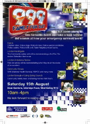 Representatives from all the emergency services and a variety of other community groups will be present at this 999 Family Fun Day.