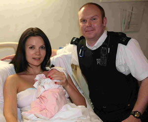 He took her hand and reassured her. The baby (a girl) was born with the umbilical cord wrapped around her neck. PC Wells unravelled the cord and ensured she was breathing. The baby was then handed to PC Martin Warnes, who was also at the scene, wrapped in a coat and handed to her mother. Shortly afterwards the ambulance arrived and mother and baby were taken to hospital.
