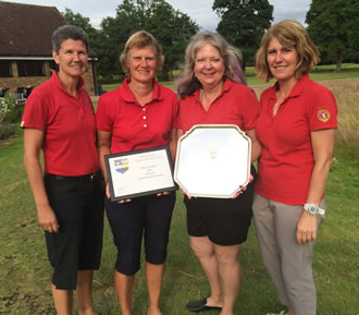 In a stunning display of skill and team work the four ladies (pictured right) went from strength to strength over the two rounds as they rose steadily through the ranks of the 60 clubs from all over Surrey in what was described by the SLCGA President, Rosemary Wallis, as Surrey’s biggest and most prestigious annual golf competition with 240 ladies taking part on the day.
